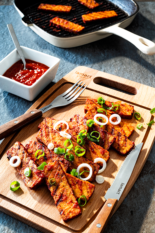 Namiesto tempeha môžeme použiť údené tofu. "Rebierka" môžeme pripraviť na všetkých tipoch grilov.