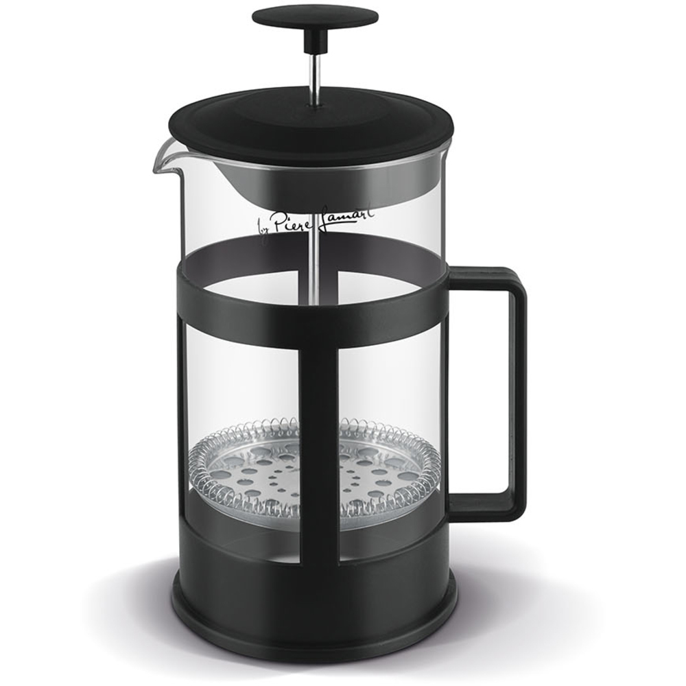 Kanvica obsahuje nerezové stlačovacie sitko pre čaj a mletú kávu.