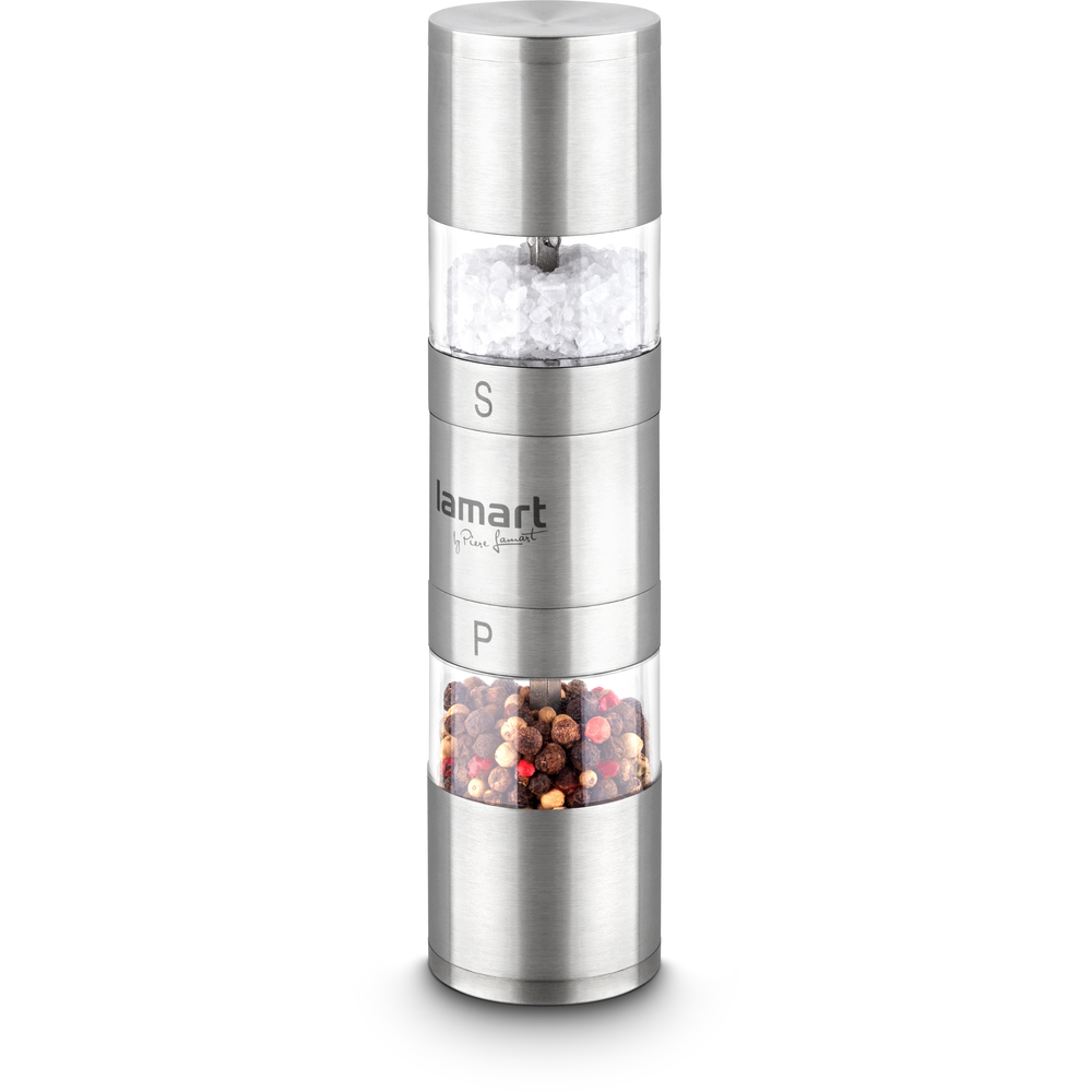 Mlynček na korenie/soľ je vyrobený z nehrdzavejúcej ocele a plastu s keramickým mlecím mechanizmom s nastaviteľnou hrubosťou mletia.
