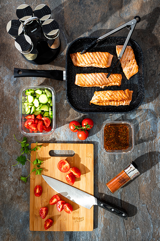 Kožu na filetoch lososa ponecháme, stačí z nej len ostrým nožom odstrániť šupiny. Losos sa vďaka koži nevysuší a na panvici sa nebude rozpadávať. Rybu však nikdy neumývajte pod vodou, len zľahka otrite papierovou utierkou. Zo všetkého najskôr panvicu rozohrejte a potrite kvapkou olivového oleja alebo troškou prepusteného masla. Filet z lososa dajte na panvicu kožou dolu a odolajte nutkanie s ním hýbať, aby sa nepripiekol. Akonáhle sa totiž prepečie, sám sa od dna uvoľní. Zo strany sledujte, ako filet mení farbu, a v okamihu, keď bude zhruba do dvoch tretín prepečený, opatrne ho otočte. Akonáhle zmení farbu po celej výške, nechajte ho ešte minútu na panvici, vyberte a nechajte pár minút odpočívať pod alobalom, aby sa všetky chute dokonale prepojili.