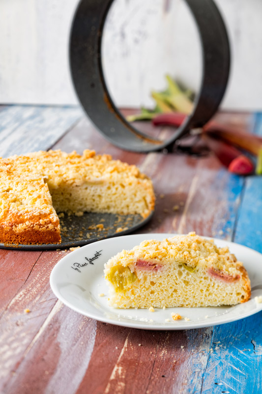 Múku, cukor a prášok do pečiva starostlivo zmiešame, pridáme biely jogurt a nakoniec rozšľahané vajce. Všetko dôkladne premiešame a nalejeme do maslom vymastenej formy alebo na plech. Poukladáme na kúsky nakrájanú rebarborou a posypeme posýpkou.