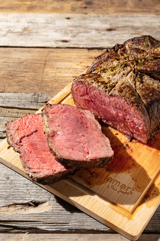 Po upečení krájame rostbíf ostrým nožem na tenké plátky