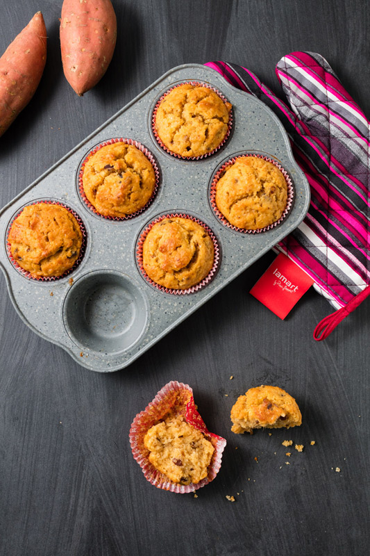 V miske vyšľaháme cukor, olej a pomarančovú kôru do peny. Pridáme nasekané datle, kokos a uvarené, roztlačené sladké zemiaky a vajcia. Dobre premiešame a nakoniec pridáme múku, mlieko a prášok do pečiva. Premiešame a cesto nalejeme do maslom vymastených formičiek a pečieme v predhriatej rúre pri 180°C do spevnenia cca 45 minút.