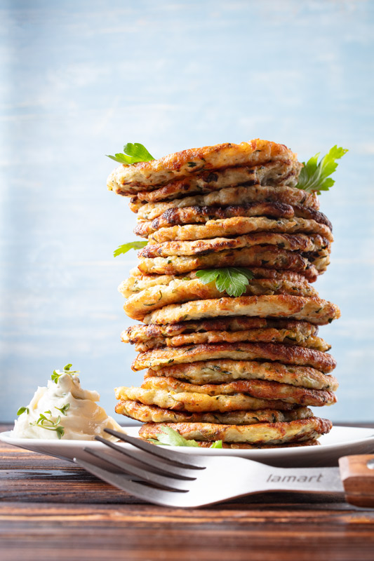 Cuketovo zemiakové placky s kozím syrom a žeruchou