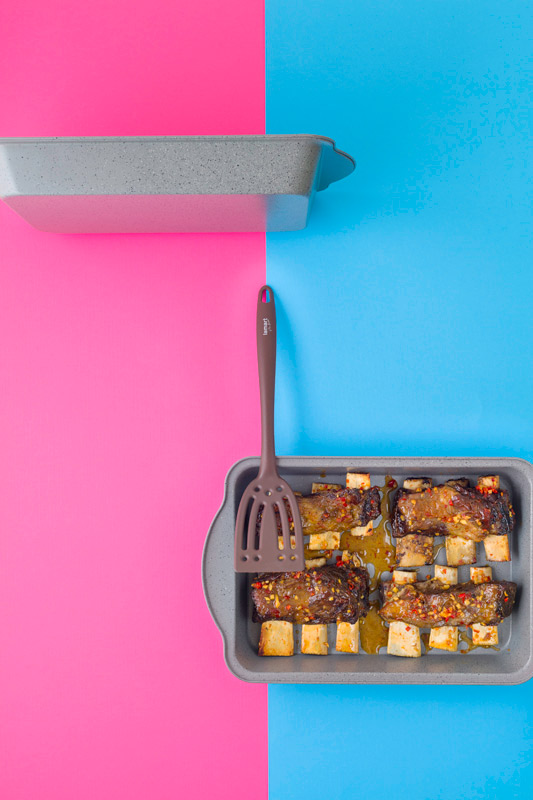 Uvarené rebrá vyberieme, necháme vychladnúť a potrieme pripravenou marinádou. Rebrá pečieme v predhriatej rúre na cca 170°C približne 20 minút.