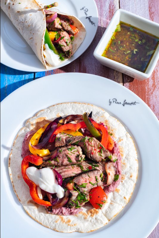 Hovädzie fajitas na grile s paprikami a fazuľovou pastou.