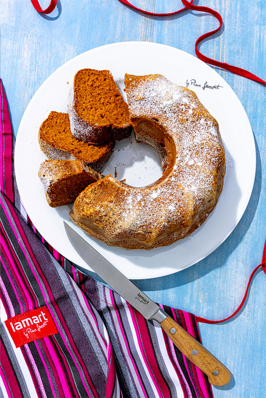 Bábovkovú formu vymastíme máslom a vysypeme polohrubou múkou. Vo veľkej misii metličkou premiešame všetky suché ingrediencie. Potom zmiešame metličkou mokré ingrediencie so suchými, dohladka vymiešame a vlejeme do pripravenej formy – zmes bude dosť tekutá. Vložíme do trúby a pečieme zhruba hodinu do zlata.