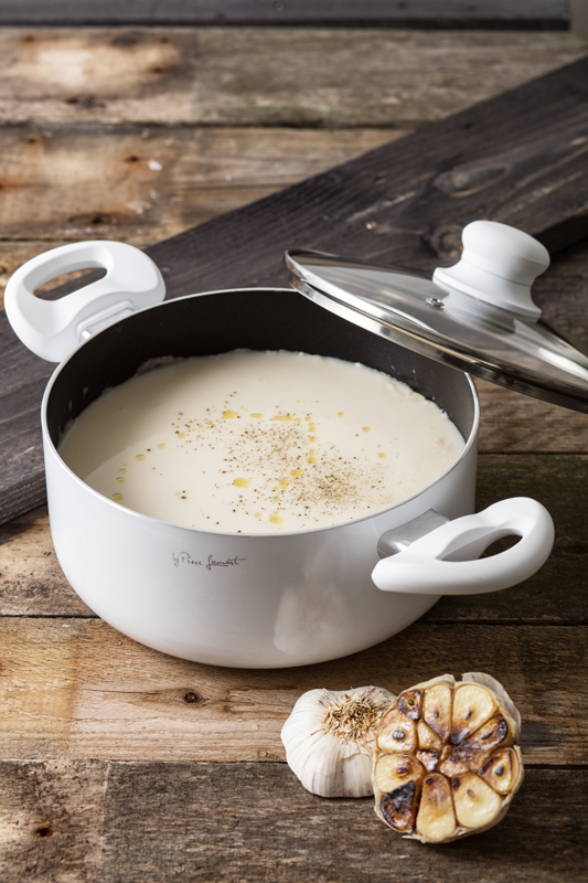 Jednoduchá a chutná smotanová polievka z pečeného cesnaku s čerstvým majoránom